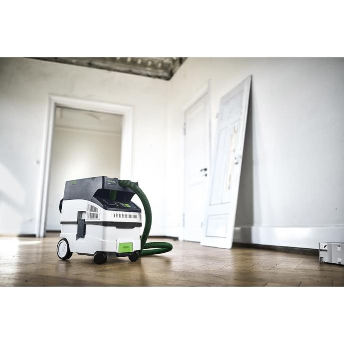 The Festool CLEANTEC CT MIDI I HEPA Dust Extractor 578512 combines portability with advanced functionality through its compact, lightweight design and durable chassis that makes job site transport effortless. This dust extractor features intuitive touch controls for seamless operation, while integrated Bluetooth technology enables convenient remote start and stop capabilities. The unit incorporates a manual filter cleaning feature that enhances filtration performance and maintains optimal suction power, complemented by quick, tool-free dust filter changes for minimal downtime. Practical design elements include an internal hose garage for clean, secure transport of the smooth suction hose, and compatibility with the Systainer storage system for organized tool management. Recent updates include a power button color that matches the broader CT lineup aesthetic, and a revised hood design that accommodates all SYS3 versions while eliminating the traditional Systainer locking clips for improved versatility.