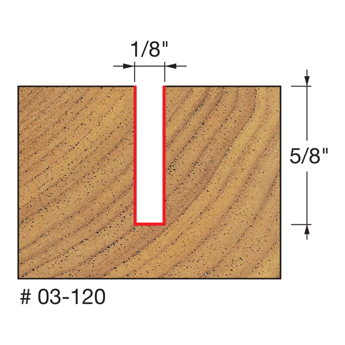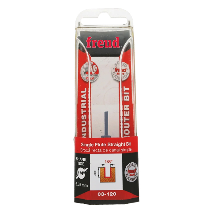 Manufacturer Freud Part Number 03-120-FRD Manufacturer's Part 03-120 Weight 0.200 lbs UPC/EAN Code 8925382201 Diameter 1/8" Shank Diameter 1/4" Overall Length 2" Type Single Flute No. of Cutters 1 Max. RPM 24,000 RPM Carbide Height 5/8"