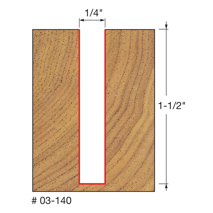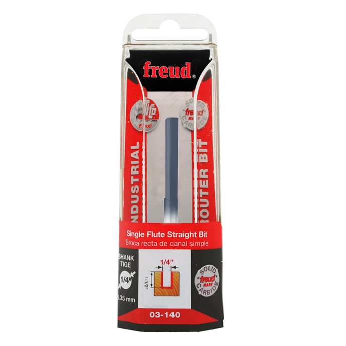 Manufacturer Freud Part Number 03-140-FRD Manufacturer's Part 03-140 Weight 0.200 lbs UPC/EAN Code 8925382256 Diameter 1/4" Shank Diameter 1/4" Overall Length 2-1/2" Type Single Flute No. of Cutters 1 Max. RPM 24,000 RPM Carbide Height 1-1/2"