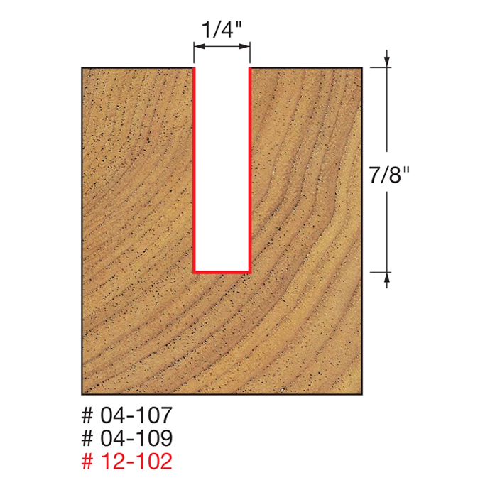 Manufacturer Freud Part Number 04-107-FRD Manufacturer's Part 04-107 Weight 0.200 lbs UPC/EAN Code 8925382355 Diameter 1/4" Shank Diameter 1/4" Overall Length 2-1/4" Type Double Flute Straight Material Black Ice No. of Cutters 2 Max. RPM 24,000 RPM Carbide Height 7/8"