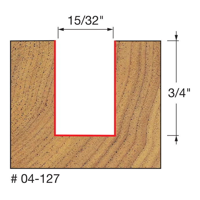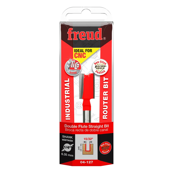 Manufacturer Freud Part Number 04-127-FRD Manufacturer's Part 04-127 Weight 0.200 lbs UPC/EAN Code 8925385240 Diameter 15/32" Shank Diameter 1/4" Overall Length 2" Type Double Flute Straight No. of Cutters 2 Max. RPM 24,000 RPM Carbide Height 3/4"