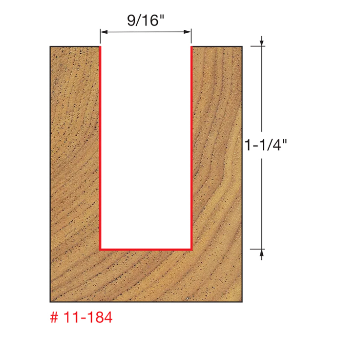 Manufacturer Freud Part Number 11-184-FRD Manufacturer's Part 11-184 Weight 0.140 lbs UPC/EAN Code 8925382690 Diameter 9/16" Shank Diameter 1/2" Overall Length 2-1/2" Type Single Flute No. of Cutters 2 Max. RPM 24,000 RPM Carbide Height 1-1/4"