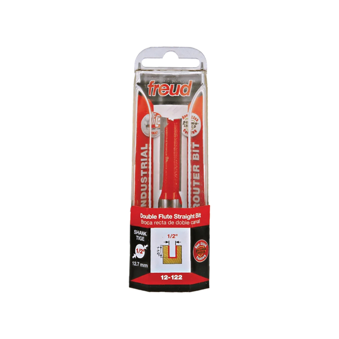 Manufacturer Freud Part Number 12-122-FRD Manufacturer's Part 12-122 Weight 0.190 lbs UPC/EAN Code 8925380184 Diameter 1/2" Shank Diameter 1/2" Overall Length 3-1/8" Type Double Flute Straight No. of Cutters 2 Max. RPM 24,000 RPM Carbide Height 1-1/2"