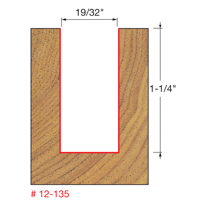 Manufacturer Freud Part Number 12-135-FRD Manufacturer's Part 12-135 Weight 0.180 lbs UPC/EAN Code 8925385271 Diameter 19/32" Shank Diameter 1/2" Overall Length 2-7/8" Type Double Flute Straight No. of Cutters 2 Max. RPM 24,000 RPM Carbide Height 1-1/4"