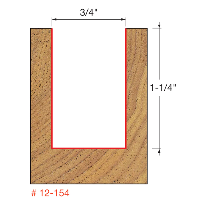 Manufacturer Freud Part Number 12-154-FRD Manufacturer's Part 12-154 Weight 0.250 lbs UPC/EAN Code 8925380238 Diameter 3/4" Shank Diameter 1/2" Overall Length 3" Type Double Flute Straight No. of Cutters 2 Max. RPM 24,000 RPM Carbide Height 1-1/4"