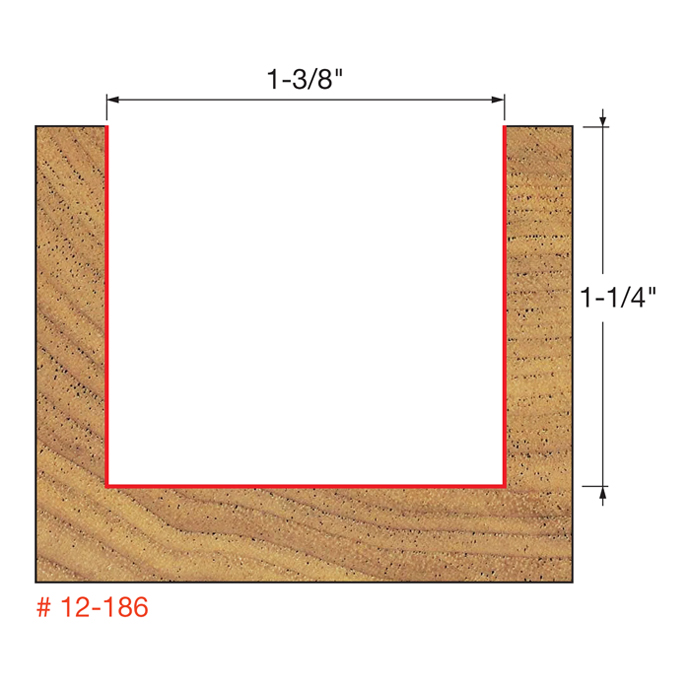 Manufacturer Freud Part Number 12-186-FRD Manufacturer's Part 12-186 Weight 0.430 lbs UPC/EAN Code 8925382881 Diameter 1-3/8" Shank Diameter 1/2" Overall Length 3" Type Double Flute Straight Material Tico Hi-Density Carbide No. of Cutters 2 Max. RPM 16,000 RPM Carbide Height 1-1/4"