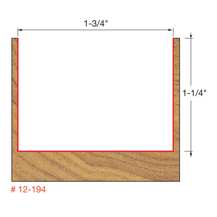 Manufacturer Freud Part Number 12-194-FRD Manufacturer's Part 12-194 Weight 0.590 lbs UPC/EAN Code 8925382904 Diameter 1-3/4" Shank Diameter 1/2" Overall Length 3" Type Double Flute Straight Material Tico Hi-Density Carbide No. of Cutters 2 Max. RPM 16,000 RPM Carbide Height 1-1/4"