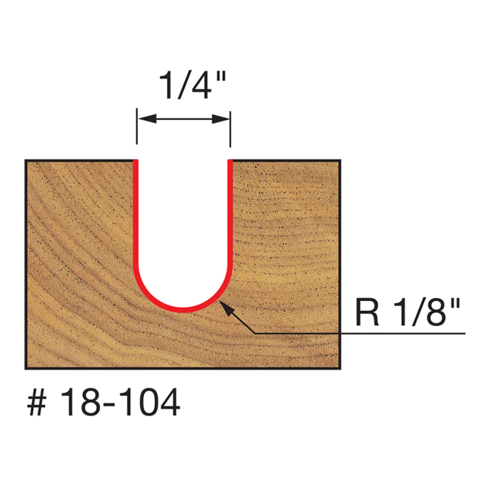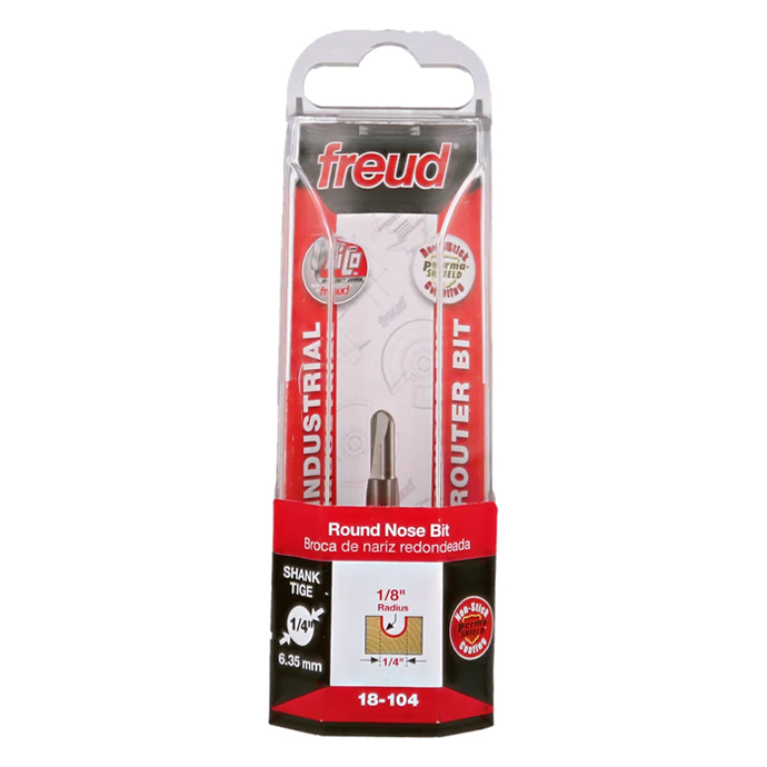 Manufacturer Freud Part Number 18-104-FRD Manufacturer's Part 18-104 Weight 0.070 lbs UPC/EAN Code 8925380368 Diameter 1/4" Shank Diameter 1/4" Overall Length 2" Type Round Nose No. of Cutters 2 Max. RPM 24,000 RPM Carbide Height 3/8" Radius 1/8"