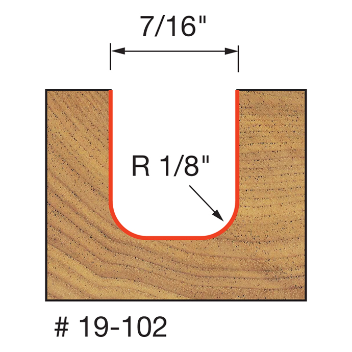 Manufacturer Freud Part Number 19-102-FRD Manufacturer's Part 19-102 Weight 0.070 lbs UPC/EAN Code 8925385370 Diameter 7/16" Shank Diameter 1/4" Overall Length 2" No. of Flutes 2 Type Dish Carving Max. RPM 24,000 RPM Carbide Height 1/2" Radius 1/8"