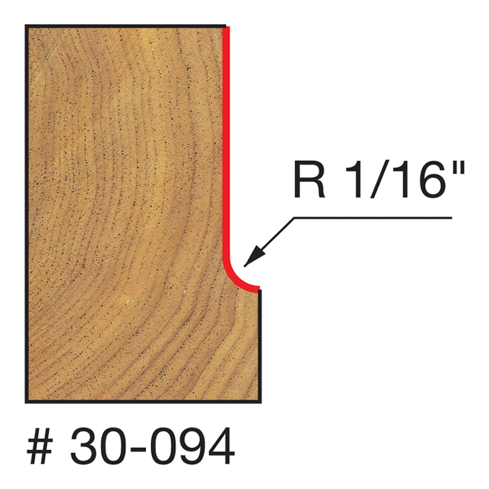 Manufacturer Freud Part Number 30-094-FRD Manufacturer's Part 30-094 Weight 0.080 lbs UPC/EAN Code 8925383048 Diameter 1/2" Shank Diameter 1/4" Overall Length 2-3/16" Type Cove No. of Cutters 2 Max. RPM 24,000 RPM Carbide Height 1/2" Radius 1/16"