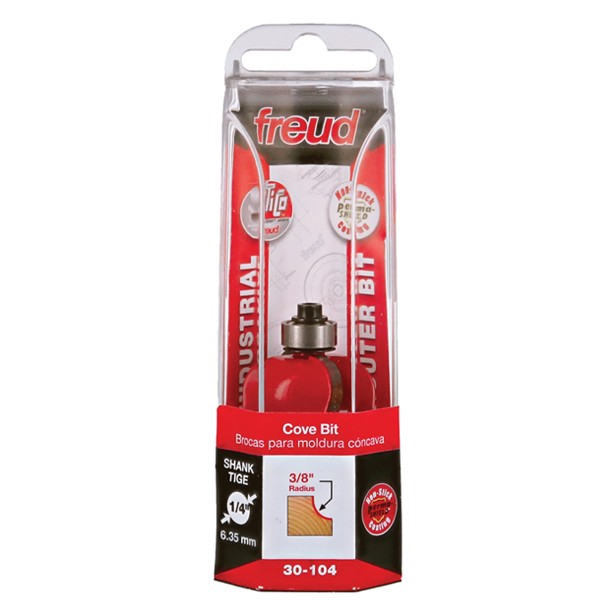 Manufacturer Freud Part Number 30-104-FRD Manufacturer's Part 30-104 Weight 0.170 lbs UPC/EAN Code 8925380603 Diameter 1-1/4" Shank Diameter 1/4" Overall Length 2-3/16" Type Cove No. of Cutters 2 Max. RPM 18,000 RPM Carbide Height 1/2" Radius 3/8"