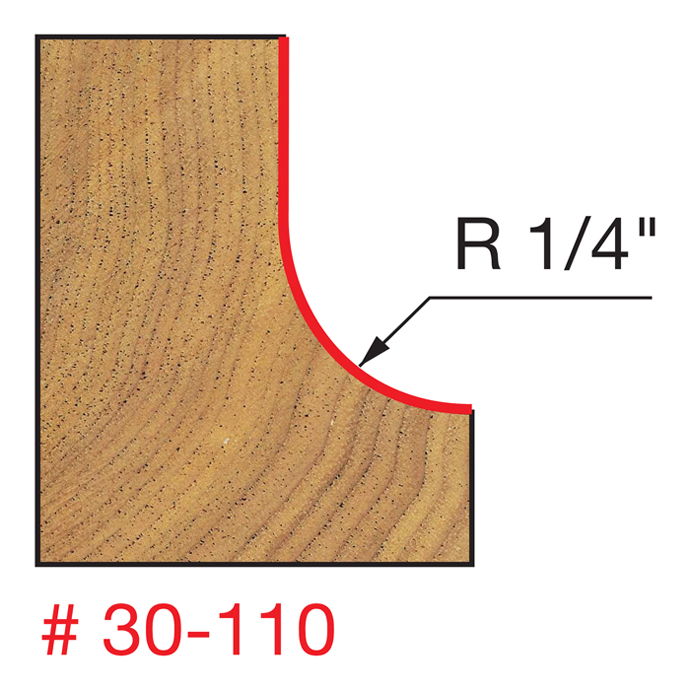Manufacturer Freud Part Number 30-110-FRD Manufacturer's Part 30-110 Weight 0.190 lbs UPC/EAN Code 8925383079 Diameter 1" Shank Diameter 1/2" Overall Length 2-1/2" Type Cove No. of Cutters 2 Max. RPM 24,000 RPM Carbide Height 1/2" Radius 1/4"