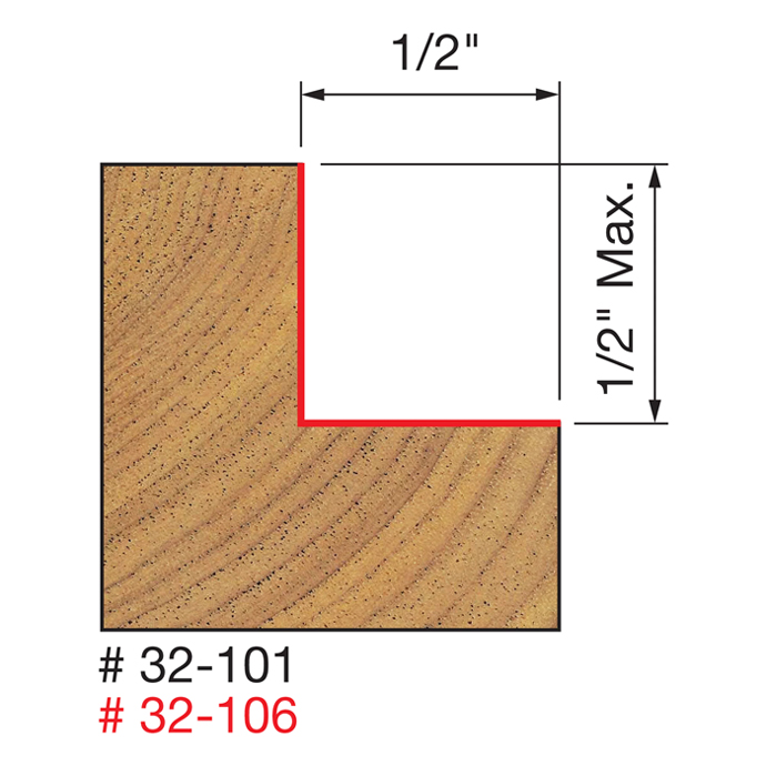 Manufacturer Freud Part Number 32-106-FRD Manufacturer's Part 32-106 Weight 0.260 lbs UPC/EAN Code 8925021377 Diameter 1-3/8" Shank Diameter 1/2" Overall Length 2-1/4" Max. RPM 16,000 RPM Carbide Height 1/2" Small Diameter 3/8"