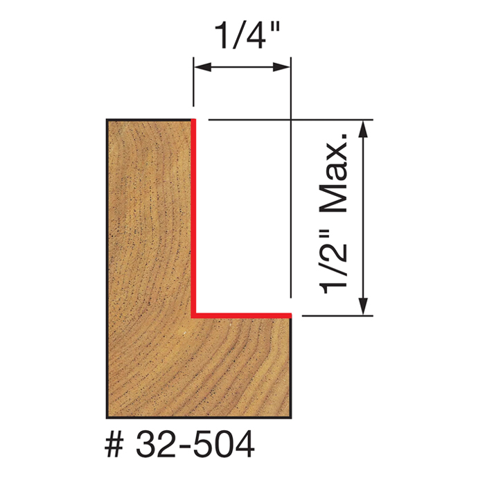 Manufacturer Freud Part Number 32-504-FRD Manufacturer's Part 32-504 Weight 0.420 lbs UPC/EAN Code 8925385080 Diameter 1-3/8" Shank Diameter 1/4" Overall Length 2-1/4" Type Rabbeting No. of Cutters 2 Max. RPM 16,000 RPM Carbide Height 1/2"