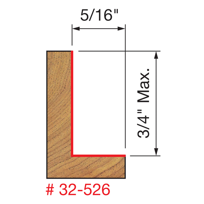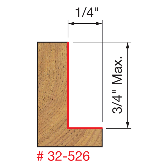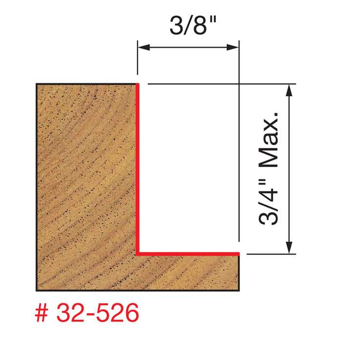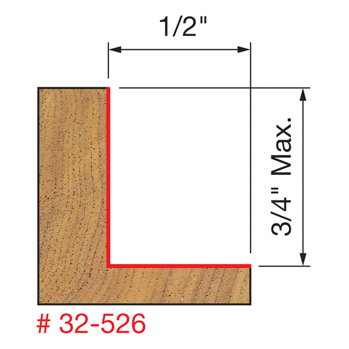 Manufacturer Freud Part Number 32-526-FRD Manufacturer's Part 32-526 Weight 0.520 lbs UPC/EAN Code 8925021353 Diameter 1-3/8" Shank Diameter 1/2" Overall Length 2-1/2" No. of Cutters 2 Max. RPM 16,000 RPM Carbide Height 3/4"