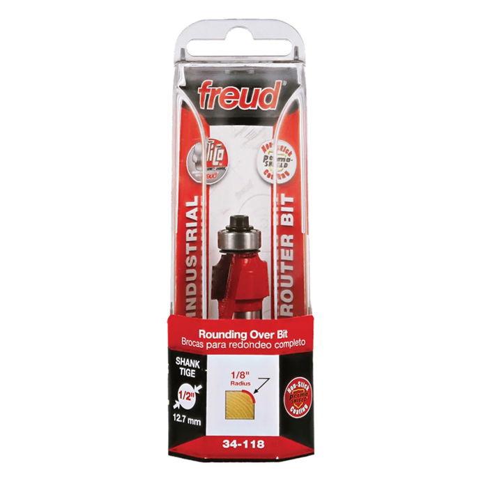 Manufacturer Freud Part Number 34-118-FRD Manufacturer's Part 34-118 Weight 0.200 lbs UPC/EAN Code 8925383222 Diameter 3/4" Shank Diameter 1/2" Overall Length 2-1/2" Type Rounding Over No. of Cutters 2 Bearing Diameter 1/2" Carbide Height 1/2" Radius 1/8"