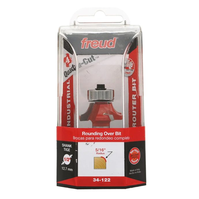 Manufacturer Freud Part Number 34-122-FRD Manufacturer's Part 34-122 Weight 0.220 lbs UPC/EAN Code 8925383246 Diameter 1-1/2" Shank Diameter 1/2" Overall Length 2-1/2" Type Rounding Over No. of Cutters 4 Bearing Diameter 1/2" Carbide Height 1/2" Radius 5/16"