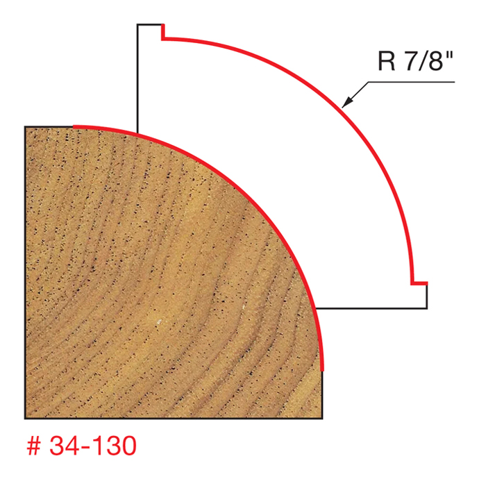 Manufacturer Freud Part Number 34-130-FRD Manufacturer's Part 34-130 Weight 0.520 lbs UPC/EAN Code 8925383260 Diameter 2-1/4" Shank Diameter 1/2" Overall Length 3-1/8" Type Rounding Over No. of Cutters 4 Bearing Diameter 1/2" Carbide Height 1-1/4" Radius 7/8"