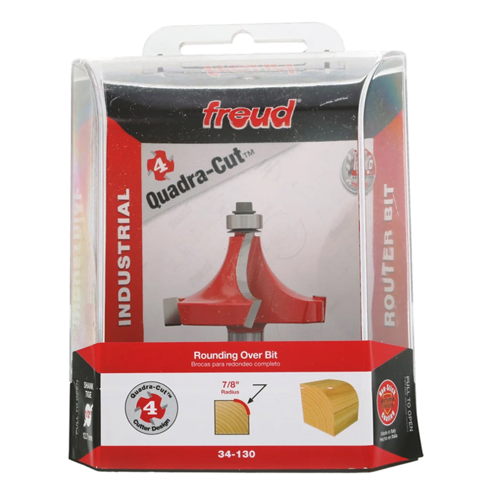 Freud Rounding Over Bits have so many uses that they are indispensable in any shop. Use them to make moldings, doors and drawers, "soften" sharp edges of parts, and so many other tasks. Most of these bits also feature Freud's unique Quadra-Cut design for flawless finish in cross-grain applications. To get more use from your bits, equip the bits with a bearing that is 1/8" smaller in diameter to create a beading profile. Use them in CNC, hand-held and table mounted routers to cut hardwood, softwood, plywood and composites.