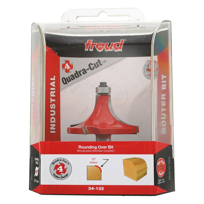Freud Rounding Over Bits have so many uses that they are indispensable in any shop. Use them to make moldings, doors and drawers, "soften" sharp edges of parts, and so many other tasks. Most of these bits also feature Freud's unique Quadra-Cut design for flawless finish in cross-grain applications. To get more use from your bits, equip the bits with a bearing that is 1/8" smaller in diameter to create a beading profile. Use them in CNC, hand-held and table mounted routers to cut hardwood, softwood, plywood and composites.