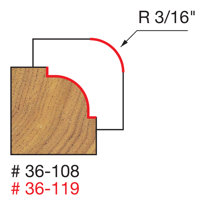 Manufacturer Freud Part Number 36-119-FRD Manufacturer's Part 36-119 Weight 0.170 lbs UPC/EAN Code 8925383369 Diameter 7/8" Overall Length 2-1/2" Type Beading No. of Cutters 2 Carbide Height 1/2" Radius 3/16"