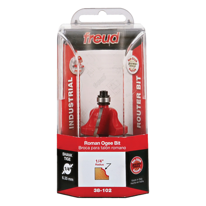 Manufacturer Freud Part Number 38-102-FRD Manufacturer's Part 38-102 Weight 0.190 lbs UPC/EAN Code 8925380894 Diameter 1-3/8" Overall Length 2-3/8" Type Roman Ogee No. of Cutters 4 Max. RPM 16,000 RPM Bearing Diameter 3/8" Carbide Height 23/32" Large Radius 1/4"