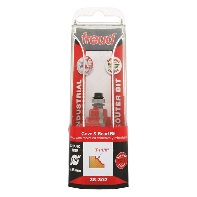 Manufacturer Freud Part Number 38-302-FRD Manufacturer's Part 38-302 Weight 0.130 lbs UPC/EAN Code 8925383475 Diameter 1-5/32" Shank Diameter 1/4" Overall Length 2-3/16" No. of Flutes 2 Type Decorative Edge Max. RPM 18,000 RPM Bearing Diameter 3/8" Carbide Height 5/8" Large Radius 1/8"