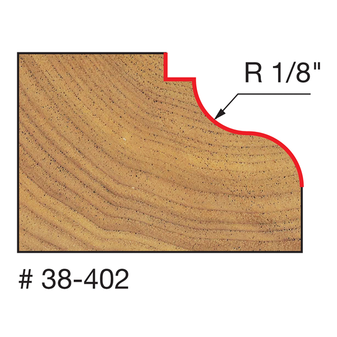 Manufacturer Freud Part Number 38-402-FRD Manufacturer's Part 38-402 Weight 0.150 lbs UPC/EAN Code 8925383536 Diameter 1-1/4" Overall Length 2-3/16" Type Roman Ogee No. of Cutters 2 Max. RPM 18,000 RPM Bearing Diameter 1/2" Carbide Height 19/32" Minor Height 15/64" Large Radius 1/8"
