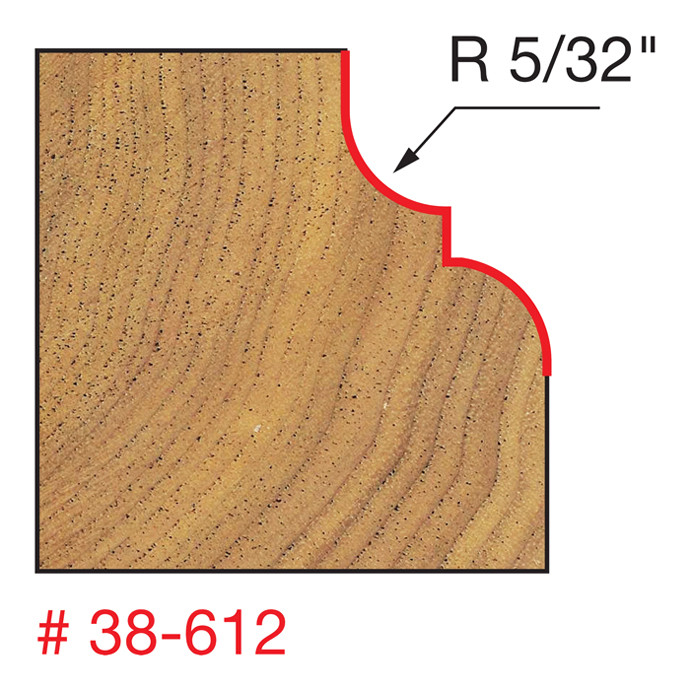 Manufacturer Freud Part Number 38-612-FRD Manufacturer's Part 38-612 Weight 0.230 lbs UPC/EAN Code 8925384588 Diameter 1-1/8" Overall Length 2-9/16" Type Classical Cove & Round No. of Cutters 4 Max. RPM 18,000 RPM Bearing Diameter 1/2" Carbide Height 1/2" Minor Height 5/64" Large Radius 5/32"