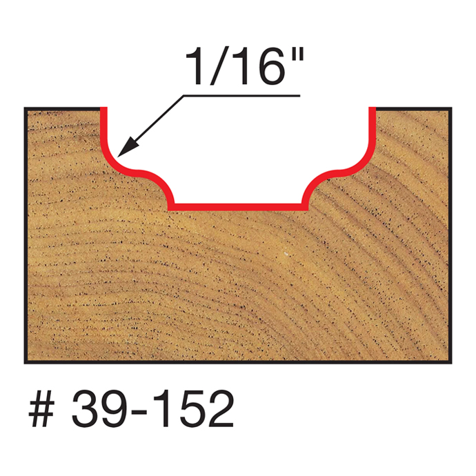 Manufacturer Freud Part Number 39-152-FRD Manufacturer's Part 39-152 Weight 0.060 lbs UPC/EAN Code 8925383666 Diameter 1/2" Overall Length 1-9/16" Type Ogee No. of Cutters 2 Max. RPM 24,000 RPM Carbide Height 5/16" Radius 1/16" Small Diameter 1/4"