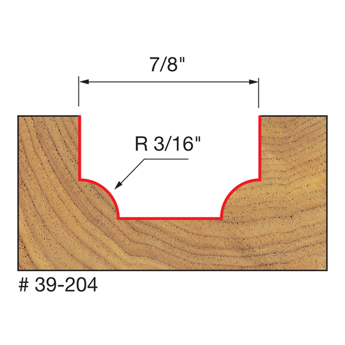 Manufacturer Freud Part Number 39-204-FRD Manufacturer's Part 39-204 Weight 0.100 lbs UPC/EAN Code 8925385479 Diameter 7/8" Overall Length 1-3/4" Type Ovolo No. of Cutters 2 Carbide Height 1/2" Radius 3/16"