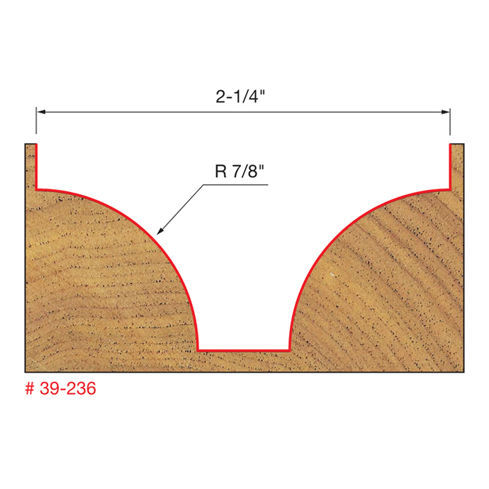 Ideal For: Grooves in French Provincial style This bit is built with a 1/2" shank for stability and precision, featuring 2 carbide cutters for smooth performance, rated for speeds up to 16,000 RPM, with a cutting diameter of 2-1/4", and a carbide height of 11/8", overall length measures 2-5/8" for versatile applications, designed with a 7/8" radius for clean, decorative edges. Perfect for woodworkers who want professional results in cabinetry, furniture making, and detailed trim work.