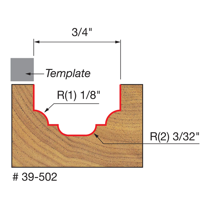 Use these bits with your template to produce a cove and bead groove with a flat bottom. These bits add depth to furniture or millwork, and they can also create an attractive decorative edge profile. Use with hand-held or table-mounted routers to cut any hardwood, softwood, plywood or composite.