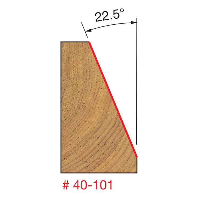 Manufacturer Freud Part Number 40-101-FRD Manufacturer's Part 40-101 Weight 0.240 lbs UPC/EAN Code 8925383918 Diameter 1-1/4" Overall Length 2-5/8" Type Chamfer No. of Cutters 2 Max. RPM 18,000 RPM Angle 22-1/2° Bearing Diameter 1/2" Carbide Height 7/8"