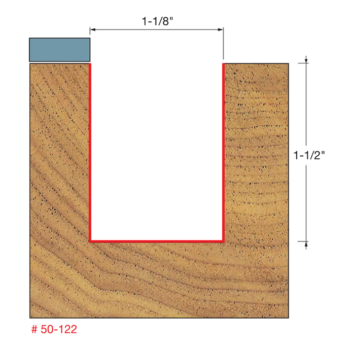 Manufacturer Freud Part Number 50-122-FRD Manufacturer's Part 50-122 Weight 0.500 lbs UPC/EAN Code 8925384250 Diameter 1-1/8" Shank Diameter 1/2" Overall Length 3-3/8" No. of Flutes 2 Type Top Bearing Flush Max. RPM 18,000 RPM Bearing Diameter 1-1/8" Carbide Height 1-1/2"
