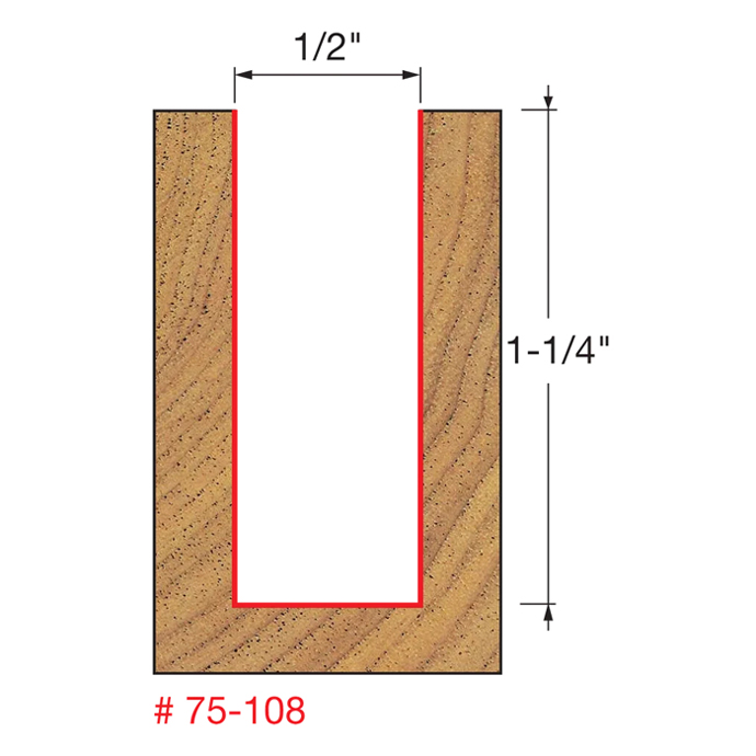 Manufacturer Freud Part Number 75-108-FRD Manufacturer's Part 75-108 Weight 0.230 lbs UPC/EAN Code 8925390053 Diameter 1/2" Shank Diameter 1/2" Overall Length 3" Type Up Spiral No. of Cutters 2 Max. RPM 24,000 RPM Carbide Height 1-1/4"