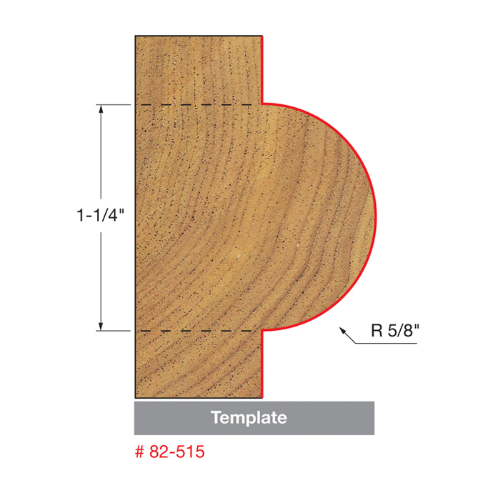 Manufacturer Freud Part Number 82-515-FRD Manufacturer's Part 82-515 Weight 0.780 lbs UPC/EAN Code 8925384397 Diameter 2" Shank Diameter 1/2" Overall Length 3-13/16" No. of Flutes 2 Type Half Round with Bearings Max. RPM 16,000 RPM Bearing Diameter 3/4" Carbide Height 2" Radius 5/8"