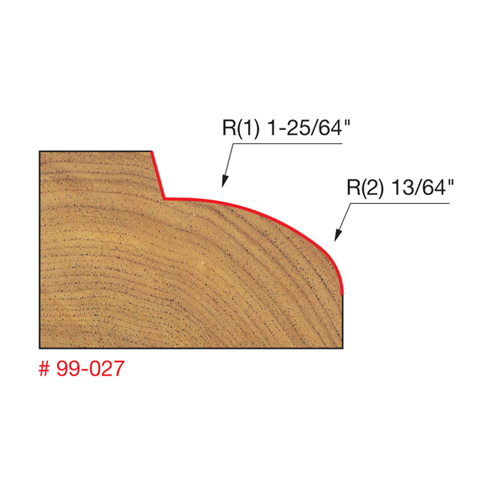 Manufacturer Freud Part Number 99-027-FRD Manufacturer's Part 99-027 Weight 0.500 lbs UPC/EAN Code 8925381693 Overall Length 13/64" Type Table Edge & Hand Rail No. of Cutters 4 Max. RPM 12,000 RPM Bearing Diameter 1/2" Carbide Height 23/32" Minor Height 2-5/8" Small Radius 1-25/32" Large Radius 1-25/32"