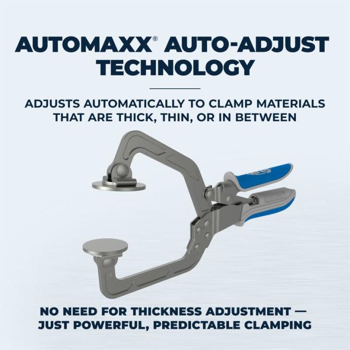 Auto-Adjust Technology: Thanks to Automaxx® auto-adjust technology, Wood Project Clamps adjust to match material thickness automatically with a simple squeeze of handles — whether the material is thick, thin, or in between. You can clamp a 2x4 and then a piece of 1/2" plywood without ever readjusting the clamp.